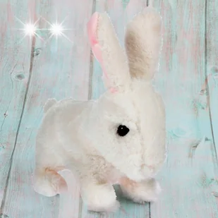 potrafi kicać jak prawdziwy króliczek wydaje odgłosy podczas zabawy rusza pyszczkiem i uszkami