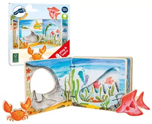 Drewniana książeczka dla niemowląt z bezpiecznego certyfikowanego drewna FSC(R) 100%-certified Pozwól dziecku odkrywać fascynujący podwodny świat. Rybki i kraby zgrabnie przechodzące przez otworki w ksiązęczce, poruszające się po ciekawie ilustrowanych stronach pobudzają wyobraźnię dziecka. Dołączone stworzonka mogą zostać przyczepione do książeczki.