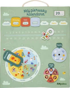 Miękka tablica aktywizująca "Mój pierwszy kalendarz" w polskiej wersji językowej belgijskiej marki Lilliputiens to wielofunkcyjne źródło rozrywki i nauki dla ciekawskich maluszków, a także doskonałe wprowadzenie w świat czasu i codziennych rytuałów. Stworzony z myślą o dzieciach od 3. roku życia, pomaga lepiej zrozumieć upływające dni, pory roku, zmieniającą się pogodę oraz własne emocje. Za pomocą obrotowych tarcz i elementów na rzepy maluch może: oznaczyć dzisiejszą datę, wskazać wczoraj i jutro, wybrać aktualny dzień tygodnia, ustalić miesiąc i rok, określić porę roku, dopasować pogodę, wskazać swój obecny nastrój.