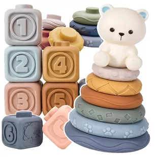 Miękkie klocki sensoryczne dla maluszka - Piramidka Miś 13el. Z829