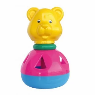 Edukacyjny miś z sorterem kształtów. Trzeba trafić do otworu o odpowiednim kształcie, sprawić, żeby rączka posłuchała głowy - to nie są takie proste zadania! A najważniejsze, że dzieci je lubią, a jednocześnie trenują koordynację ruchowo-wzrokową.