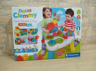 Stolik oferujący szereg różnych zabaw w miękkim świecie Clemmy! Domek jest praktycznym pojemnikiem na miękkie klocki, a szczelina w dachu służy do wkładania ich do środka domku. Dziecko może bawić się, wyjmując je lub układając je w stos. Wśród wielu atrakcji jest również katapulta, dzięki której Clemmy „skaczą”, a koła zębate wprawiają w ruch karuzelę, na której można układać klocki. Dzięki szczelinom dziecko może wrzucać klocki do wgłębień w nogach stolika, a następnie ponownie je zbierać, ucząc się w ten sposób związków przyczynowo-skutkowych. Sprawność manualną stymuluje książeczka pop-it, a dzięki miękkiemu młotkowi dziecko może bawić się katapultą lub łatwiej wsuwać Clemmy w szczeliny.