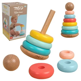 Owl & Fox Drewniana Piramidka Wieża Układanka Montessori 12m+