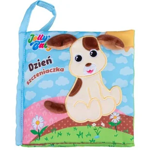 Jollybaby 80458 Dzień Szczeniaczka. Razem ze szczeniaczkiem przeżyj dzień pełen przygód! Na kolorowych stronach kryją się urocze obrazki ilustrujące historyjkę na temat pieska. Zróżnicowane faktury materiałów, piszczałka i doszyte elementy uatrakcyjnią zabawę oraz pomogą rozwijać zdolności poznawcze dziecka.
