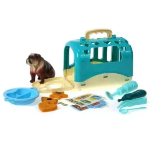 Piesek z klatką do przenoszenia, z akcesoriami; 29,5x18x13,5cm, Box