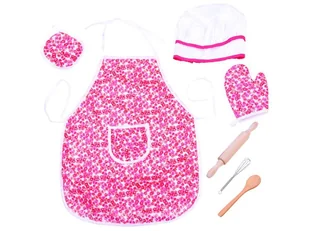Różowy Zestaw Kucharza Fartuszek Czapka Wałek