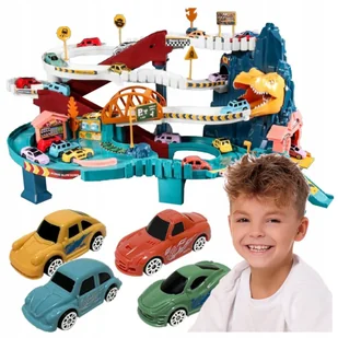 Tor Samochodowy Zjeżdżalnia Autek Parking Winda Elektryczna Dinozaur +Autka ➡️ Tor samochodowy z dinozaurem – światła, dźwięki i emocjonująca zabawa! ✅ NAJWA...
