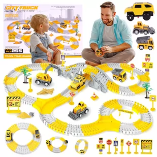 TOR WYŚCIGOWY CITY TRUCK CONSTRUCTOR XXL Pojazdy Budowlane - 255 elementów ➡️ DŁUGOŚĆ TORU 350CM |➡️ PLACU BUDOWY |➡️ DOWOLNA KONFIGURACJA |➡️ 1X AUTKO NA BATERIE |➡️ 3X POJAZD BUDOWLANY