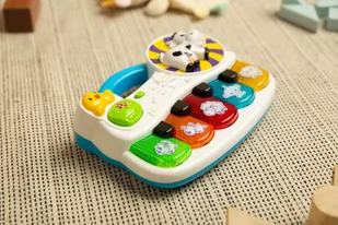 Pianinko Farma to zabawka edukacyjna od TOYZ, która rozwinie zamiłowanie do muzyki u Twojego dziecka. Kolorowa klawiatura jest podświetlana w trakcie zabawy, dzięki czemu uwaga dziecka będzie skupiona na zabawce. Zabawka zawiera: -Podświetlaną klawiaturę -Przycisk muzyki – włączający ciekawe melodie -Wesołą krowę, która muczy po poruszeniu nią -2 stopnie głośności Dane techniczne: Przedział wiekowy: