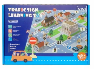 Zabawka drewniana znaki drogowe i sygnalizatory wraz z kartami o znakach