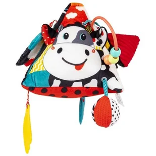 Piramidka Kontrastowa Krowa DeluxeBalibazoo ➡️ Zabawki / Sensoryczne ✔️ Zapomnij o nudzie z kontrastową piramidką w wersji Deluxe! Ta sensoryczna zabawka zajmie malucha na kilka różnych sposobów, gdyż na każdej z jej ścianek kryje się inna niespodzianka. Na małych poszukiwaczy wrażeń czeka bezpieczne lustereczko, tasiemki do przeciągania, piszczałka oraz gryzaczek, który przyniesie ulgę podczas ząbkowania. Piramidka wyposażona jest w praktyczny uchwyt w formie pałąka z zawieszonymi na nim koralikami do przesuwania paluszkiem. Materiały, z których wykonana została zabawka, różnią się fakturą, wzorem i kolorem, dzięki czemu, stymulować będą zmysły bobasa, zachęcając go tym samym do rozwijania zdolności poznawczych. Produkt przeznaczony jest dla dzieci od dnia narodzin.