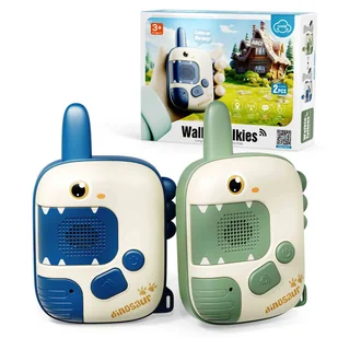Dziecięce krótkofalówki z motywem dinozaura | Zabawka do przygód na świeżym powietrzu i edukacyjna Fajny design dinozaura – Te zabawne krótkofalówki z motywem dinozaurów zachwycą małych odkrywców i uczynią każdą przygodę jeszcze bardziej ekscytującą! Stabilne połączenie i czysty dźwięk – Wykonane z wytrzymałych, odpornych na upadki materiałów i zoptymalizowanej technologii dla niezawodnego przekazu bez zakłóceń. Zawiera praktyczny pasek do noszenia dla swobody rąk. Łatwa obsługa dla dzieci – Automatyczne łączenie się po włączeniu, bez skomplikowanej konfiguracji. Po prostu naciśnij, aby mówić, zwolnij, aby słuchać – idealne dla dzieci w wieku od 3 lat! Zasięg do 1000 stóp – Idealne do aktywności na świeżym powietrzu, takich jak biwakowanie, wędrówki lub zabawy w ogrodzie i po sąsiedzku. Zasilanie bateryjne i lekki – Każda krótkofalówka wymaga 3 baterii AAA (niezałączonych) i jest idealnie przenośna dzięki kompaktowemu designowi.