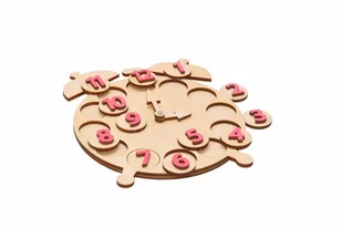 Zegar do nauki godzin: - kolor naturalny/odcień różowy - wymiary: wysokość 210 mm X szerokość 180 mm - materiał sklejka grubości 3 mm, 4 mm - wycinane wysoki...