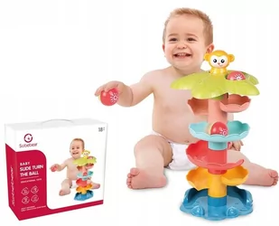 Kula zaczyna się toczyć, a oczy maluszka przez 6 sekund będą podążać za piłką obserwując jak ta szybko przemieszcza się na kolejne poziomy. Zgadnij, którym wyjściem wypadnie? : ) Zalety zabawki: Piłeczki grzechoczą kiedy spadają na niższe poziomy Na samej górze wieżyczki znajduje się małpka, która zwalnia blokadę Wszystkie elementy są rozkładane - dziecko może samodzielnie budować wieżę W zestawie są dołączone 2 kolorowe piłeczki Zestaw wykonany jest w żywej kolorystyce oraz elementów trwałych i bezpiecznych. Zachęca to dziecko do zabawy oraz stymuluje zmysły.