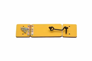 Żółte drzwi kolor z haczykiem tablica manipulacyjna, sensoryczna.