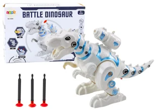 BIAŁY DINOZAUR Z WYRZUTNIĄ STRZAŁEK ŚWIATŁA DŹWIĘKI