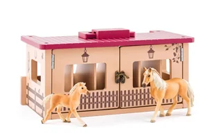 Zestaw składa się z 2 koni oraz drewnianej stajni z sześcioma stanowiskami. Stajnia posiada otwierane drzwi na metalowy zawias oraz górny uchwyt, dzięki któr...