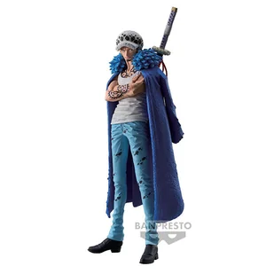 Ta kolekcjonerska figurka BANDAI Banpresto o wysokości ok. 23 cm przedstawia Trafalgar Law w specjalnej wersji z serii King of Artist. Jest on kapitanem piratów Heart w serialu anime One Piece i jest znany ze swojej chirurgicznej precyzji w walce. Zyskał to dzięki diabelskiemu owocowi "Ope Ope no Mi", który dał mu moc manipulowania materią i ludźmi w stworzonej przez siebie przestrzeni. Tutaj nosi swój płaszcz i czeka w chłodnej pozie.