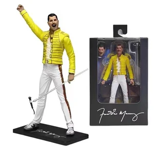 Figurka FREDDIE MERCURY (Yellow Jacket) Wysokość ok. 18 cm Producent: NECA Uczcij Freddiego Mercury'ego, jednego z najbardziej charakterystycznych i potężnych głosów muzyki rockowej dzięki tej 18 cm figurce! Legendarny wokalista Queen ma na sobie swoją kultową żółtą kurtkę z trasy koncertowej „Magic” w 1986 roku, która zakończyła się występem przed 120 000 fanów to byłby ostatni występ Feddiego Mercury'ego. Figurka ma ruchomą szyję i ramiona, zawiera akcesoria: mikrofon, uchwyt mikrofonu, alternatywną wymienną głowę i podstawę.