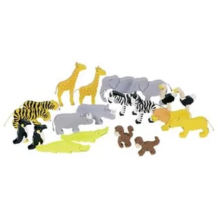 drewniane figurki zwierząt afrykańskich 20 elementów wyrzeźbiona z niezwykłą dbałością o szczegóły wykonana z wysokiej jakości drewna zaokrąglone brzegi, pomalowane nietoksycznymi farbami solidne wykonanie wymiary żyrafy: