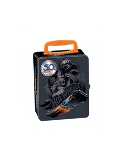 Cała walizeczka wykonana jest z metalu i zadrukowana obrazkami aut Hot Wheels oraz logo serii. Na górze znajduje się wygodna, pomarańczowa rączka .Przed niekontrolowanym otwarciem się skrzyneczki, zabezpiecza metalowe zamknięcie - klips. Specjalnie zaprojektowana metalowa walizka na samochodziki pozwoli uporządkować, przechować lub przetransportować bezpiecznie aż 50 aut.