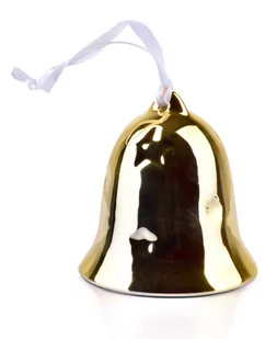 Ceramiczny dzwonek z serii MIA marki MONDEX. Ceramika w kolorze złotym na białej wstążecce. Idealny jako dekoracja okienna lub ścienna. 7.5xh8cm
