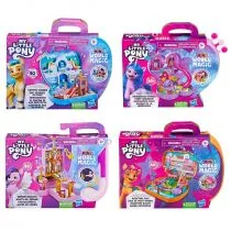 Odrobina magii Urozmaić swoją zabawę o odrobinę magii. Napełnij pojemnik zimną wodą i umieść w nim smakołyki, by zobaczyć, jak magicznie zmieniają kolor! Przenieś się do świata mini kucyków i razem z Sparky Sparkeroni szukajcie smakołyków w chmurach. Zbierz je wszystkie Szukaj innych mini światów! Zestawy Mini World Magic łączą się ze sobą, dzięki czemu dzieci mogą zbudować całą krainę Equestria! Zestawy sprzedawane oddzielnie Każdy z zestawów kompaktowe miasteczko zawiera 2 figurki o wysokości 2,5 cm, a także ponad 40 elementów, dzięki którym można dowolnie ozdabiać scenki rozgrywające się w jednym z miejsc. Buduj płotki i schody, urządzaj i baw się! Przyłączaj elementy do zestawu i ozdabiaj go dołączonymi naklejkami. Odkrywaj tajemnice i nowe przygody wszędzie tam, gdzie chcesz, zabierając zestaw ze sobą! Cechy produktu:
