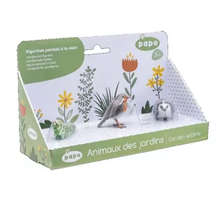 Zestaw 3 figurek zwierząt, które można znaleźć w każdym ogrodzie lub na łące. Wszystkie figurki Papo zostały zaprojektowane i opracowane we Francji, w celu łączenia nauki i zabawy dla dzieci. Figurki Papo są źródłem rozrywki, pobudzają dziecięcą wyobraźnię, co jest ważne dla ich rozwoju. Różnorodność postaci i wzajemne oddziaływanie różnych wszechświatów stymulują kreatywność i wyobraźnię. Dlatego tak często wykorzystywane są w metodzie Montessori.