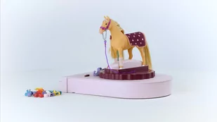Stacja Pielęgnacyjna Sesja odnowy biologicznej w stacji pielęgnacji koni idzie tak dobrze, że koń nie chce wychodzić. Piękny wierzchowiec naprawdę lubi szczotkowanie i czyszczenie gąbką. Aby grzywa i ogon szybciej wyschły, w szufladzie czeka suszarka do włosów. Teraz można przystąpić do stylizacji. Możesz dodać koraliki, kokardki lub kwiaty, a nawet dodatkowe pasmo włosów.