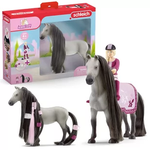 Nawet jeśli pasujący kolorystycznie kocyk jest w praniu. Do czesania, zaplatania i stylizacji! Idealny zestaw startowy: rozpakuj i zacznij bawić się i marzyć! Grzywa i ogon mogą być czesane i stylizowane! Zawartość: 1x klacz trakeńska z czesaną grzywą i ogonem, 1x w pełni ruchoma figurka Sofii, 1x koc dla konia, 1x kask, 5x spinki do włosów, 6x koraliki do włosów, 1x pasmo włosów z klipsem, 1x szczotka na palec Schleich 42584 - Horse Club - Sofia's Beauties - Zestaw startowy Sofia i DustySofia jest prawdziwą pasjonatką swojego nowego hobby - pielęgnacji koni. A jej klacz Dusty oczywiście nie ma nic przeciwko temu.