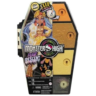 Monster High Straszysekrety Cleo de Nile Seria 2 Błyszcząca HNF76 Linia Straszysekrety powraca – tym razem z Serią Błyszczącą! Te lalki Monster High™ zapewniają upiornie świetną zabawę podczas odkrywania ponad 19 niespodzianek, takich jak stylowe ubranka, akcesoria i elementy tematyczne. Farbka Color Reveal™ na kluczykach i odkrywanie ukrytych niespodzianek dodają zabawie magii i tajemniczości, a szafka w kształcie trumny doskonale nadaje się do przechowywania elementów i zabawy. Sprzedawane oddzielnie w zależności od dostępności. Lalka z punktami zgięcia. Lalka nie stoi samodzielnie.