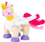 Drewniana figurka Jednorożec Luna 8 cm Została stworzona przez Small foot - markę niemieckiej firmy Legler, która od prawie 30 lat zajmuje się projektowaniem i produkcją zabawek. Figurka przedstawia uroczego, drewnianego jednorożca Lunę. Jednorożec ma biały tułów i różowo-białe skrzydła. Jego grzywa została wykonana z filcu, a róg jest żółto-pomarańczowy. Figurka ma ruchome kończyny, skrzydła oraz głowę i ogon.