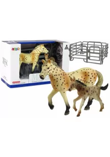 Koń rasy Knabstrupper ze źrebakiem i zagrodą