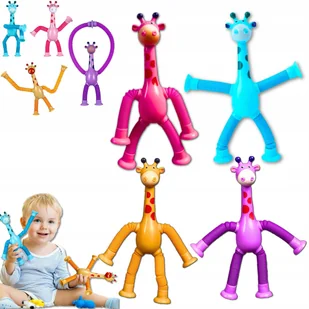 ZESTAW 4x ŻYRAFA POP TUBE LED PRZYSSAWKI ZABAWKA SENSORYCZNA ANTYSTRESOWA