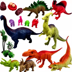 Motyw dinozaurów w dziecięcych zabawkach wykorzystywany jest coraz częściej. Dzieci uczą się ich historii poprzez zabawę. Rozpoznając gatunki tych gadów dziecko rozwija kreatywność oraz wyobraźnię. Zabawa dinozaurami wpływa na zmysł wzroku i dotyku. Realistyczny wygląd - zestaw został wykonamy z dbałością o szczegóły.