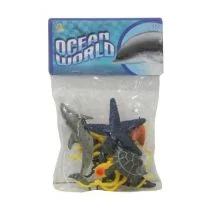 Zestaw 6 figurek zwierząt morskich: rozgwiazda, delfin, płaszczka, żółw, ośmiornica, konik morski Zabawka zapakowana w przezroczysty worek. Produkt dla dzieci od 3 lat. Podane wymiary są wymiarami opakowania.