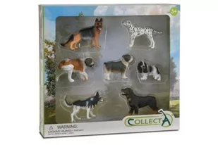 owczarek niemiecki, dalmatyńczyk, bernardyn, mops, spaniel, husky, rottweiler. Wymiary opakowania: 32,5x7x30cm Wiek: 3+ Collecta dogs: zestaw do zabawy w pudełku Ten zestaw zapoznaje dzieci z różnymi psami.