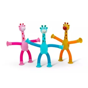 Kto powiedział, że żyrafa może mieć tylko długą szyję? Ta niesamowicie urocza żyrafa ma nogi, które składają się i rozkładają jak akordeon, a na stopach posiada przyssawki, dzięki czemu dzieci mogą ją przymocować do szyby samochodu, lustra, ściany lub innej płaskiej powierzchni. Jej sympatyczna i kolorowa głowa świeci, nadając jej jeszcze bardziej wyjątkowy wygląd. Wykonuje gimnastykę? „Przytula” uchwyt na ołówki? Zwisa z półki albo tańczy na swoich długich nogach? To zależy tylko od wyobraźni dzieci, w jakiej pozycji ją umieścić i w jakich opowieściach zrobić z niej bohaterkę. Zabawka wykonana jest z wysokiej jakości plastiku, bez BPA, dzięki czemu dzieci będą się nią cieszyć przez długi czas. Mała figurka może być również źródłem uwolnienia stresu lub nudy, dzięki czemu dzieci mogą się nią bawić podczas testów czy innych wyzwań, a nawet podczas długiej podróży samochodem lub pociągiem.