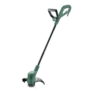 Bosch Podkaszarka elektryczna 280W Easy Grass Cut 23 Podkaszarka elektryczna Bosch EasyGrassCut 23 to bardzo lekki, poręczny sprzęt o mocy 280 W, przeznaczony przede wszystkim do precyzyjnego przycinania trawy w trudno dostępnych miejscach - przy krawężnikach, rabatach, drzewach czy po bokach tarasów. Urządzenie waży zaledwie 2 kg, co sprawia, że obsługa jest wygodna i nie męczy użytkownika nawet podczas dłuższej pracy. Silnik o mocy 280 W generuje prędkość tnącą sięgającą 12 500 obr./min, co w połączeniu z półautomatycznym systemem naciągu żyłki gwarantuje sprawne i wygodne koszenie bez konieczności ręcznego regulowania długości żyłki. Standardowo podkaszarka wyposażona jest w żyłkę o średnicy 1,6 mm i długości 4 m, zapewniając szerokość roboczą około 23 cm. Model ten wyróżnia się także prostotą i gotowością do natychmiastowego użycia - nie wymaga montażu wystarczy jedynie podłączyć przewód zasilający do prądu 230 V.