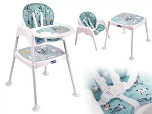 KRZESEŁKO DO KARMIENIA STOLICZEK 3W1 ZIELONY Każdy posiłek stanie się nieporównywalnie wygodniejszy z tym krzesełkiem do karmienia! Śliczny, niepowtarzalny design nie tylko przyciągnie uwagę maluszka, ale również nada jadalni ciekawego, lekkiego klimatu. Szerokie rozstawienie nóżek krzesełka zapewnia wyjątkową stabilność, nawet jeśli Twoja pociecha jest bardzo ruchliwa, nie będziesz musiał martwić się o chybotanie i przewrócenie! Zadbanie o porządek nie sprawi żadnych problemów, gdyż wszystkie powierzchnie produktu zostały pokryte specjalną warstwą ochronną. Pomoże ona nie tylko utrzymać czystość, ale także zabezpieczy produkt przed jakimikolwiek zniszczeniami, które mogą powstać w trakcie korzystania! Stabilnie w miejscu krzesełko utrzymają szerokie podstawki, które dodatkowo zabezpieczą podłogę przed rysami i innymi niepożądanymi śladami oraz powstrzymają nóżki przed ślizganiem się! Miękkie pokrycie krzesełka oraz oparcia zapewni Twojemu maluchowi wygodny posiłek. A jeśli pokrycie pobrudzi się, wystarczy, że je odepniesz, a będziesz mógł je komfortowo uprać w pralce! Pełne bezpieczeństwo dziecka zapewnią pięciopunktowe pasy, dzięki czemu możesz spokojnie włożyć dziecko do krzesełka, a ono samo z niego nie wyjdzie! Krzesełko posiada aż trzy różne funkcje! Może służyć jako krzesełko do karmienia dla dzieci od 6 do 36 miesiąca życia, a gdy maluch stanie się za duży, możesz przemienić produkt w krzesełko i stolik. Taka kombinacja pozwoli nie tylko wygodnie zjeść posiłek, ale także świetnie sprawdzi się jako miejsce to rysowania i zabawy! W takiej formie posłuży bezproblemowo aż do szóstego roku życia! Montaż produktu nie sprawi nikomu żadnych trudności! Nie musisz posiadać wyjątkowych zdolności, aby błyskawicznie złożyć i rozłożyć krzesełko! Poszczególne elementy złożysz wykorzystując do tego specjalne przyciski! Cały produkt wykonany jest z wytrzymałych i ekologicznych materiałów, bez szkodliwych ftalanów, dzięki czemu nie musisz obawiać się o zdrowie swojego dziecka! Produkt z pewnością posłuży przez wiele lat, dzięki wytrzymałej i rozwijającej się wraz z Twoim dzieckiem konstrukcji! Wymiary krzesełka Tworzywo: