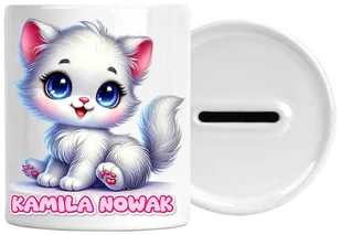 Skarbonka Kot Kotek Z Napisem Nadrukiem Prezent Urodziny Zatyczka Na Dole Nasza skarbonka ceramiczna to idealny pomysł na prezent dla dziecka lub samego sieb...