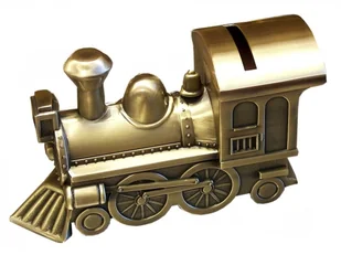 Skarbonka w kształcie lokomotywy – złoty parowóz, oryginalny prezent Wyjątkowa skarbonka w kształcie lokomotywy to efektowny i solidny prezent na chrzest, ur...
