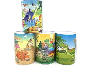 Skarbonka puszka metalowa dinozaury mix. Miks wzorów, towar wysyłany losowo Cena za sztukęSkarbonka puszka metalowa Dinozaury