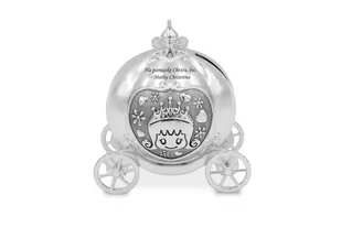 Wykonana z wysokiej jakości stali nierdzewnej Platerowana srebrem pr. 925 Wymiary skarbonki: 12x10x10cm Grawer wliczony w cenę produktu Całość zapakowana w e...