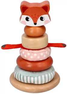 Śliczna piramidka z motywem liska Adam Toys to klasyczna drewniana zabawka dla każdego malucha. Drewniane i materiałowe krążki układa się na paliku, aby powstała piramidka. Dzięki podstawie, która ma kształt owalny całość lekko się porusza utrudniając nieco zadanie. Krążki można układać na wiele sposobów. W skład zestawu wchodzi: