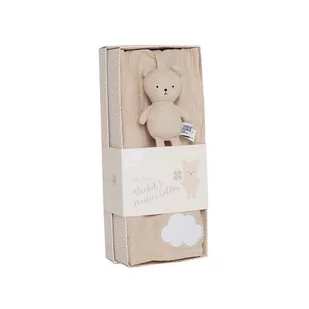 Uroczy, ekskluzywny zestaw upominkowy skłądający się kocyka, otulacza muślinowego oraz ślicznej zawieszki, przytulanki do smoczka w formie sympatycznego misia. Idealny zestaw na prezent dla noworodka, na chrzest lub baby shower. Kocyk, otulacz wykonany jest z 100% z bawełny organicznej w kolorystyce naturalnego beżu, wyśmienicie komponuje się z przyjacielem smoczka uroczym misiem w tej samej kolorystyce. Niezwykle delikatny i przyjemny w dotyku muślinowy kocyk, otulacz skandynawskiej marki Jabadabado - w kolorze beżowym z uroczym motywem białej chmurki. Idealnie dostosowany do potrzeb niemowląt.