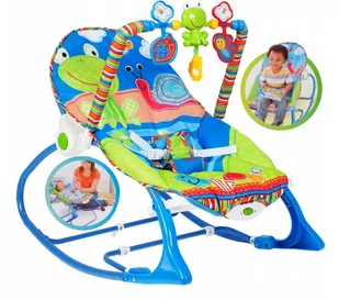 INTERAKTYWNY LEŻACZEK BUJACZEK ŻABKA Z MELODIĄ I WIBRACJĄ 2w1 DO 18 KG Wyjątkowy leżaczek bujaczek, który rośnie wraz z dzieckiem. Wyposażony w kolorowe zaba...