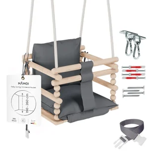 MAMOI huśtawka dla dziecka 3 w 1 jest stworzona dla szczęśliwego dzieciństwa! Każde dziecko na świecie uwielbia huśtawki. Drewniany zestaw huśtawek MAMOI zapewni radość na lata. Drewniane siedzisko huśtawki może być używane przez lata, ponieważ łatwo dostosowuje się do wzrostu i wagi dziecka. Krzesełko do huśtawki dla dzieci można zamontować w dowolnym miejscu - na suficie, w ramie drzwi lub na gałęzi. Huśtawka dla dzieci to wspaniały pomysł na wyposażenie pokoju dziecięcego. Doskonale sprawdzi się również na tarasie lub w ogrodzie.