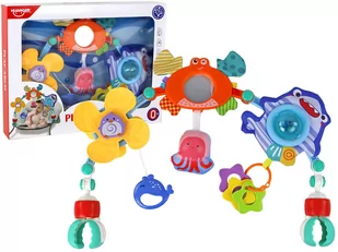 Zawieszka na łóżeczko to uroczy dodatek do pokoju maluszka, rozwijający zmysły i umiejętności. Zawiera trzy elementy: obracający się żółty wiatraczek z pingwinkiem, szeleszczącego kraba z lusterkiem i niebieskiego rekina z grzechotką.