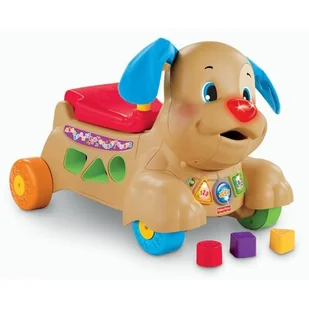 Siadanie, chodzenie, jeżdżenie, zabawa, nauka. Ten zabawny przyjazny szczeniaczek na wiele sposobów zachęca, ośmiela i nagradza dziecko! Szeroka podstawa zapewnia dziecku stabilne oparcie podczas nauki chodzenia, pomaga rozwijać umiejętność poruszania się. Optymalnie umieszczony uchwyt pomaga utrzymać równowagę, rozwija zmysł równowagi i koordynację. Sortowanie klocków o różnych kształtach i "karmienie" pieska rozwija koordynację wzrokowo-manualną. Zabawka pomaga dziecku zrozumieć zależność między przyczyną i skutkiem.